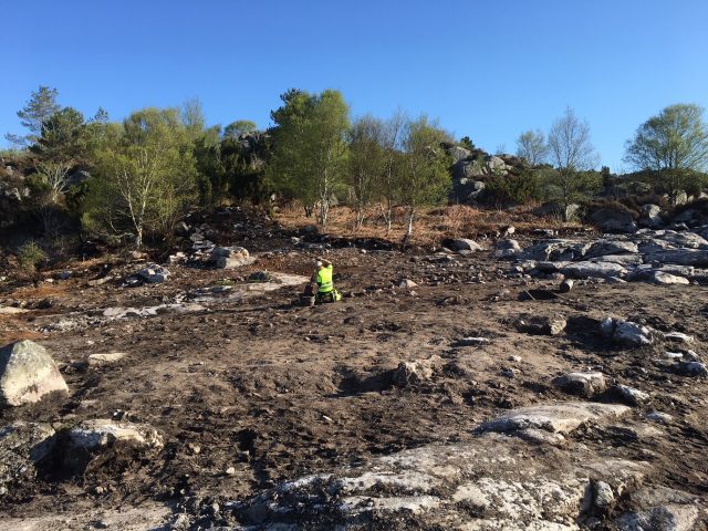 Vi har riktig nok funnet en kokegrop i nedre del av feltet, men vi tror den tilhører en senere fase i vår forhistorie, kanskje jernalderen. Samme situasjon oppstod også for to år siden, da vi undersøkte en steinalderboplass 100 meter lenger sør. Her fant vi også en kokegrop som sannsynligvis er yngre enn steinalderbosetningen. Sike spor er også viktige! For vi har påvist og undersøkt spor etter gårdsbosetning fra bronse- og jernalder noen hundre meter lenger sørøst, på Laupland (Kristine Reiersen har blogget om disse på Norark). Kanskje kan kokegropene på Vågshaug være med å belyse spørsmål omkring utmarksaktivitet i jernalder? Det er nettopp dette som gjør utgravningene på Bokn viktige. Planområdet er stort og dette gir oss mulighet til å studere vår forhistorie i et stort landskapsrom og gjennom et at langt tidsspenn.